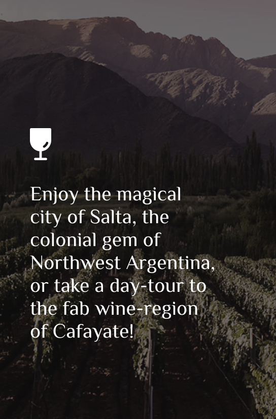 Enjoy a day-visit of the elegant city if Salta, Argentina’s colonial gem, or take two days